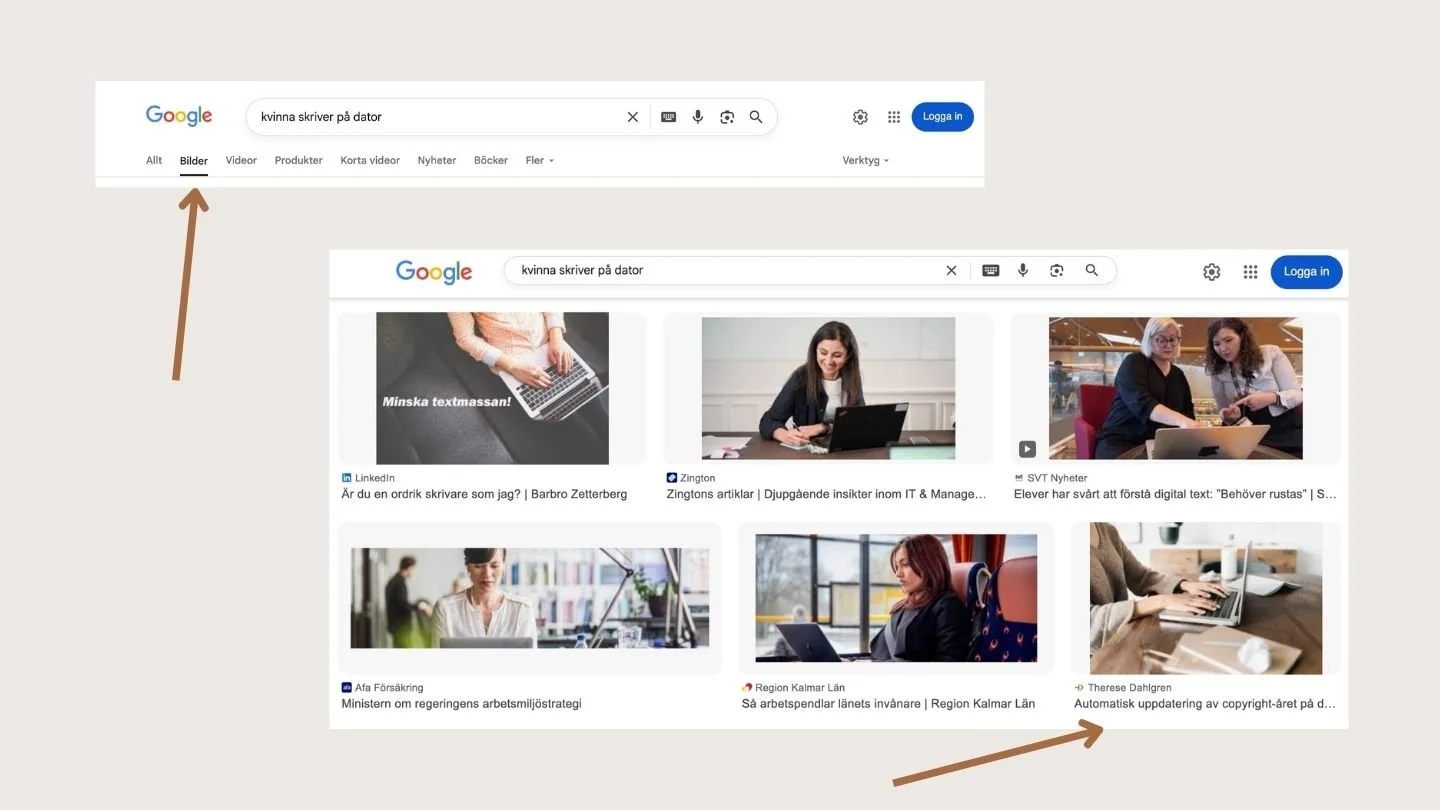 Många människor söker dessutom via bilder. Ofta minns vi bättre hur något såg ut än vad det hette – en produkt, en plats eller en specifik tjänst. Då kan en tydlig alt-text göra att din bild (och din sida) dyker upp i sökresultaten.